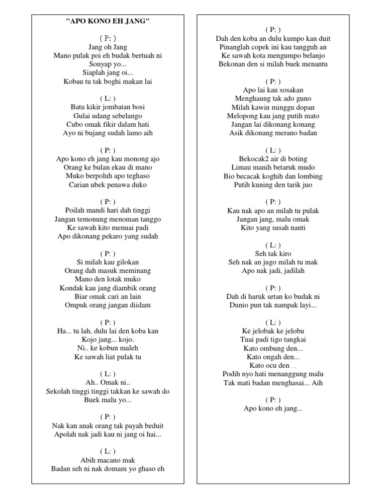 Hasil kajian mendapati terdapat tiga jenis gaya bahasa yang digunakan iaitu gaya bahasa pertentangan pengulangan dan penyirnaan. Jangan marah yo orang negeri sembilan. Lirik Lagu Negeri Sembilan Lagu Negeri.